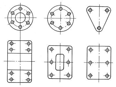 图11-8 螺纹联接接合面常见形状 2、螺栓的数目应取为易于分度的数目(如3、4、6、8、12等),以利于划线钻孔。同一组螺栓的材料直径和长度应尽量相同,以简化结构和便于装配。 3、应有合理的钉距、边距和足够的板手空间,如图11-9所示。 (a) (b) (c) 图11-9 装拆螺栓的扳手空间 4、被联接件上的支承面应做成凸台或沉头座,以免引起偏心载荷而削弱螺栓的强度,如图11-10所示。 图11-10 凸台与沉头座
