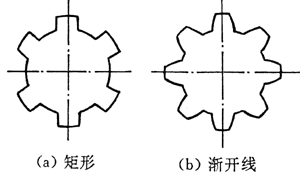 4、花键联接 图11-29 花键联接 矩形花键按其齿的尺寸和数目不同,分为轻、中、重三种系列,分别适用于轻载、中载、重载的联接。根据联接的定心方式不同,可分为外径定心、内径定心和侧面定心三种(图11-30)。前两种定心精度高,适于对中性要求高的联接;后者定心精度不高,但有利于压力在各齿侧接触面上均匀分布,适于传递较大的转矩。 图11-30 花键联接 渐开线花键的齿廓为渐开线。其定心方式可分为外径定心和齿廓定心两种。与矩形花键相比,渐开线花键的齿根较厚,应力集中较小,联接强度高。齿廓定心时,因齿面受载后齿面上有径向分力,故它有一定的自动定心能力,一般优先选用齿廓定心方式。必须注意,加工花键孔的拉刀制造成本较高,故渐开线花键常用于载荷较大,定心精度要求高以及尺寸较大的联接。