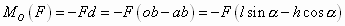 Mo(F)=Mo(Fcx)+Mo(Fcy)=Fhcosa-Flsina=-F(lsina-hcosa)