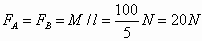 例2-4 梁AB 受一主动力偶作用,其力偶矩M=100Nm ,梁长l=5m ,梁的自重不计,求两支座的约束反力。