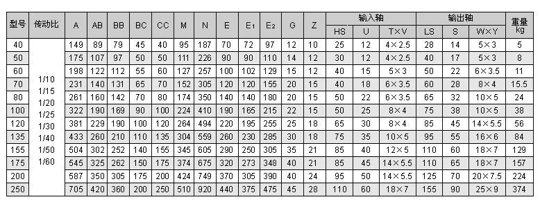 输入轴功率及输出轴转矩表